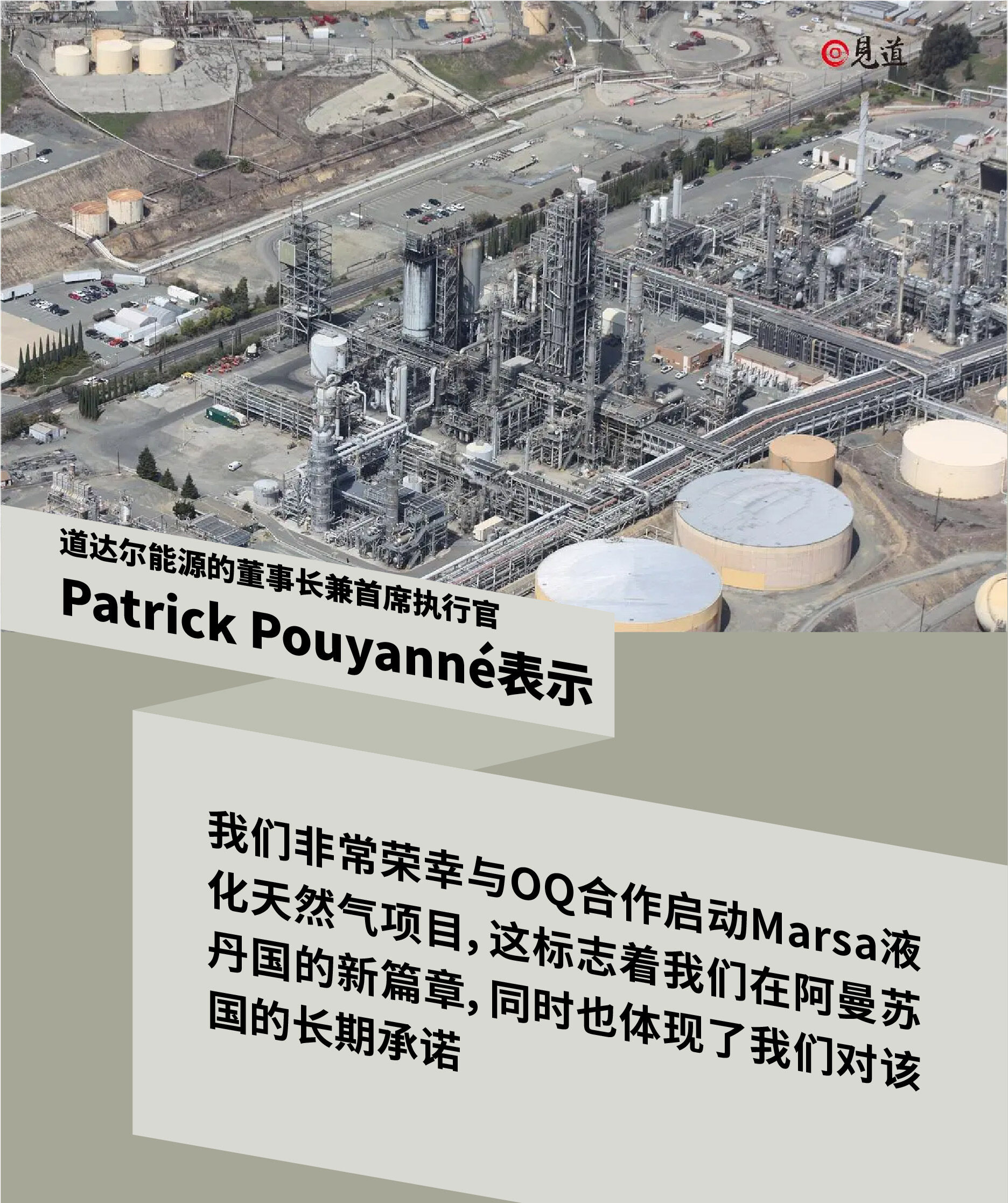 道达尔能源的董事长兼首席执行官Patrick Pouyanné表示:“我们非常荣幸与OQ合作启动Marsa液化天然气项目,这标志着我们在阿曼苏丹国的新篇章,同时也体现了我们对该国的长期承诺。我们尤其高兴能够利用我们的转型战略——液化天然气和可再生能源这两大支柱,为阿曼苏丹国能源资源的可持续发展注入新的活力。”(此文出自见道官网www.seetao.com未经允许不得转载否则必究,转载请注明见道网+原文链接)见道网战略栏目编辑/徐宁