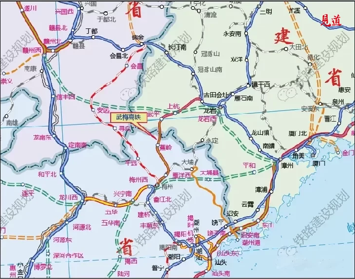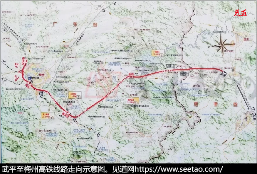 其中龙岩至梅州段时速250公里、梅州至龙川段时速350公里,分龙岩至武平段、武平至梅州段、梅州至龙川段(计划于2024年下半年通车)三段分期实施。