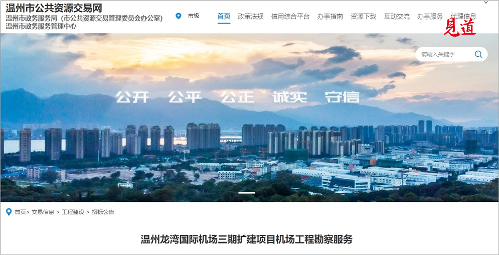 2024年5月7日,温州市公共资源电子交易平台发布了温州龙湾国际机场三期扩建项目机场工程勘察服务招标公告,招标人温州机场集团有限公司,详细情况如下: