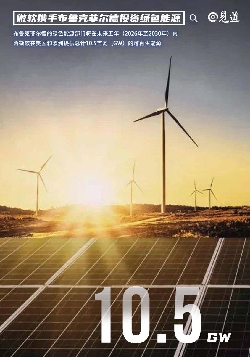 根据该协议,布鲁克菲尔德的绿色能源部门将在未来五年(2026年至2030年)内,为微软在美国和欧洲提供总计10.5吉瓦(GW)的可再生能源。这一里程碑式的项目不仅标志着微软在清洁能源领域的持续投入,也使其成为仅次于亚马逊的全球第二大清洁能源买家。
