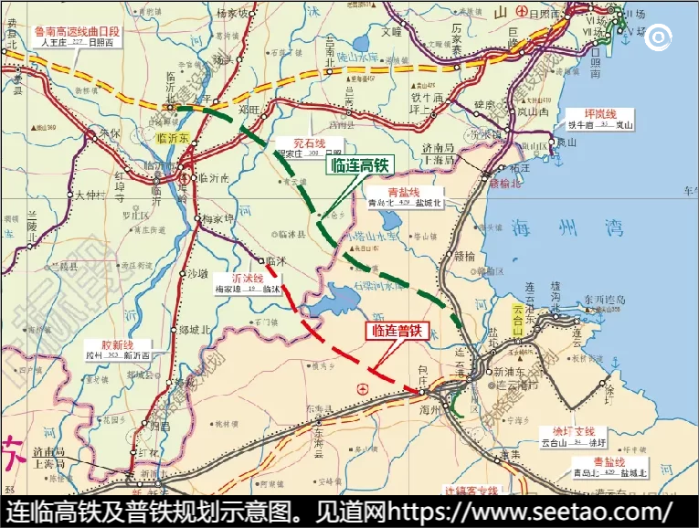 线路自日兰高铁临沂北高铁站引出,经临沂市沂河新区、河东区、临沭县、连云港市赣榆区,终至青盐铁路墩尚镇站。全长106.8公里,其中,临沂市境内67.1km,连云港市境内39.7km。项目已列入《江苏省“十四五”铁路发展暨中长期路网布局规划》中的规划研究项目、《山东省综合交通网中长期发展规划(2018—2035年)》中的远期规划项目。