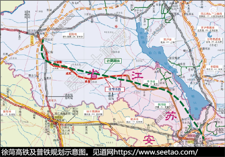 位于江苏省东北部、山东省西南部,线路东起徐州东站,向西经徐州市铜山区、沛县、丰县,菏泽市单县、成武县、定陶区,终至菏泽东站,正线长度约215km,拟建时速350公里,并规划在徐州北部预留高铁站。
