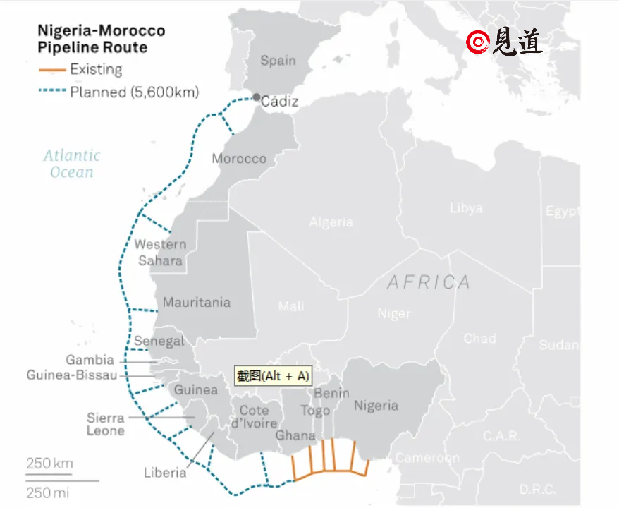 这条未来天然气管道预计每年可输送300亿立方米的天然气,不仅能满足参与国家的电力需求,还有潜力将剩余电力出口至欧洲。早在2022年,摩洛哥石油和矿业管理局、尼日利亚国家石油公司以及西非国家经济共同体已签署谅解备忘录,共同推动这一重要项目的加速进展。尼日利亚国家石油公司负责人透露,尼日利亚-摩洛哥天然气管道项目的合作伙伴计划在2024年底做出最终投资决定,以继续推进这一雄心勃勃的项目。
