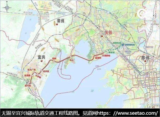 建设规模:无锡至宜兴城际轨道交通工程总投资约340亿元,线路起自宁杭高铁宜兴站,经宜兴城区、经开区、周铁,穿太湖,经马山至太湖新城,全长约61.293km,全线地下段48.082km,U形槽过渡段0.882km,高架段12.329km。全线共设站9座,其中地下站7座,高架站2座,全线平均站间距约7.6km,近期于宜兴大学城附近设车辆基地1座满足运营要求。竺山湖西至梅梁湖东区间盾构隧道外径13.6m, 总长度合计约21.5km,其中穿湖段16.7km。