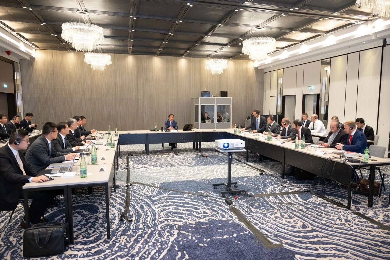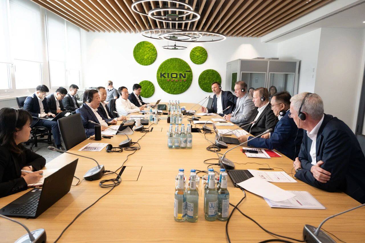 5月23日,谭旭光率队与凯傲集团管理层进行会谈,专题研究了凯傲工业叉车和美国德马泰克公司运营情况,共同探讨了全球行业形势,并就集团内新能源、液压系统等产业协同问题进行了专项对接推进。