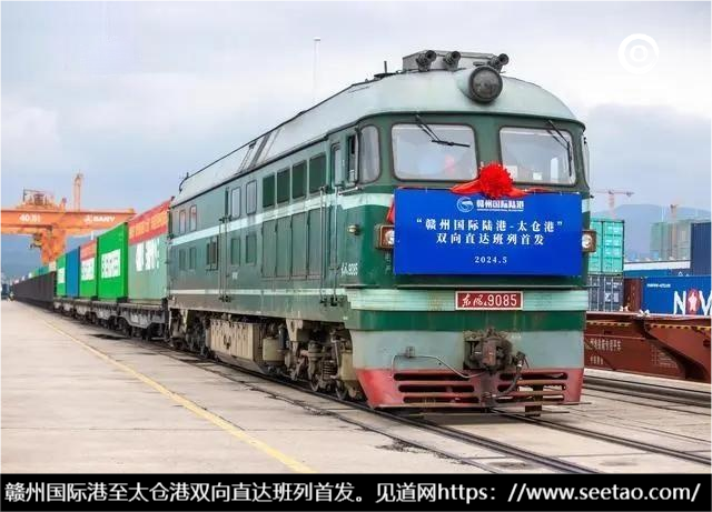2024年5月27日上午11时,装载着40个集装箱的点对点直达班列由江西赣州国际港发运,这些装载着木家具的集装箱将发往江苏省太仓市太仓港,再由太仓港分拨至江浙沪地区。与此同时,一列从太仓港始发、装满木材的班列也到达赣州国际陆港,标志着两港双向直达班列正式开通。