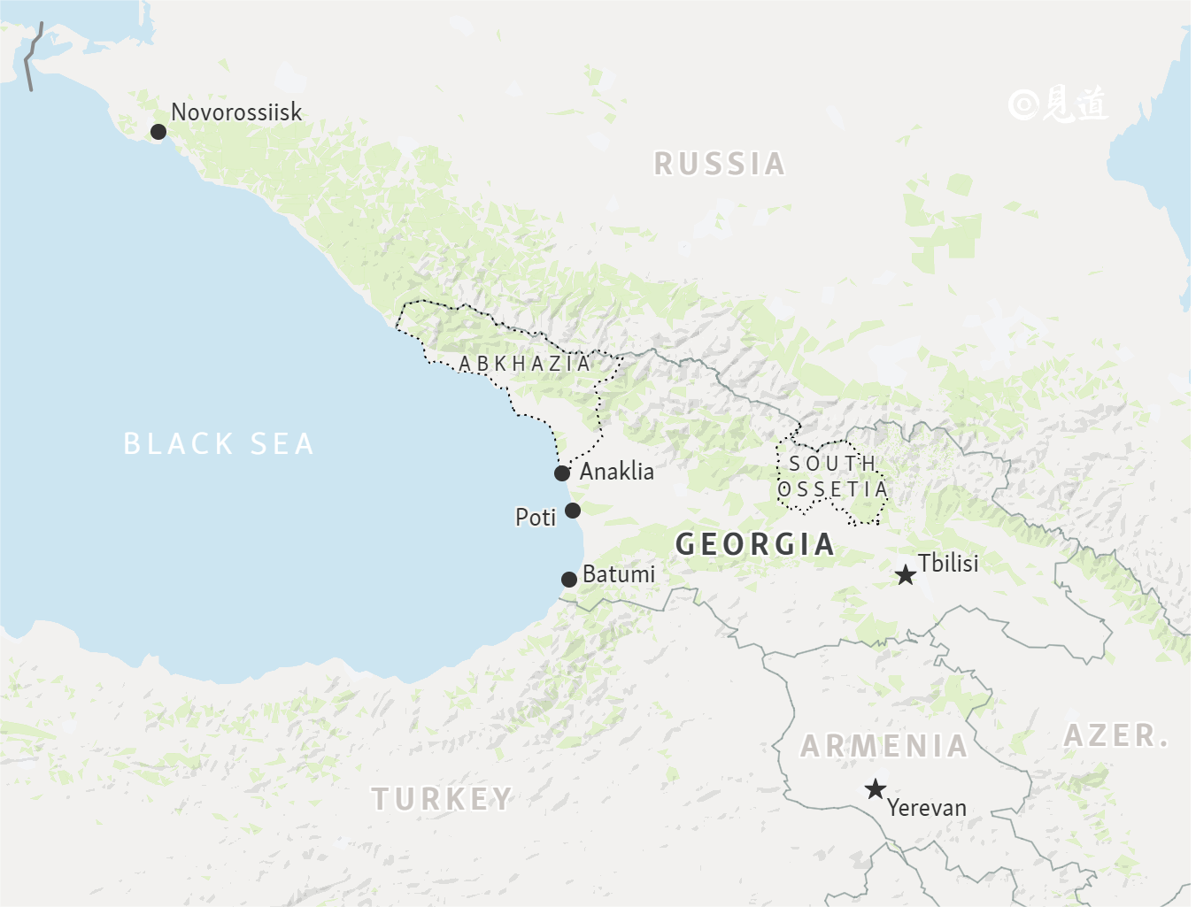 位于黑海东部的格鲁吉亚,在中欧贸易的“中间走廊”上扮演着举足轻重的角色。这一走廊,又称跨里海国际运输路线(Trans-Caspian International Transport Route),是中国与欧洲间的重要全球贸易通道之一。除了中间走廊,还有途经俄罗斯的北方走廊和穿越伊朗或通过苏伊士运河的南方走廊。在中间走廊中,货运通常从哈萨克斯坦的阿克套港出发,跨越里海到达阿塞拜疆的巴库港,再经铁路运至格鲁吉亚的波季港,随后再次通过轮渡穿越黑海,最终抵达罗马尼亚的康斯坦萨港,进而通过当地铁路网络分发至欧洲各地。