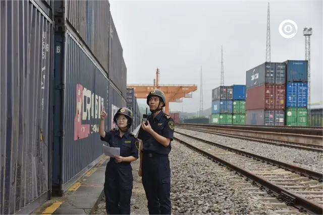 增城海关关员对过境班列货物开展现场监管