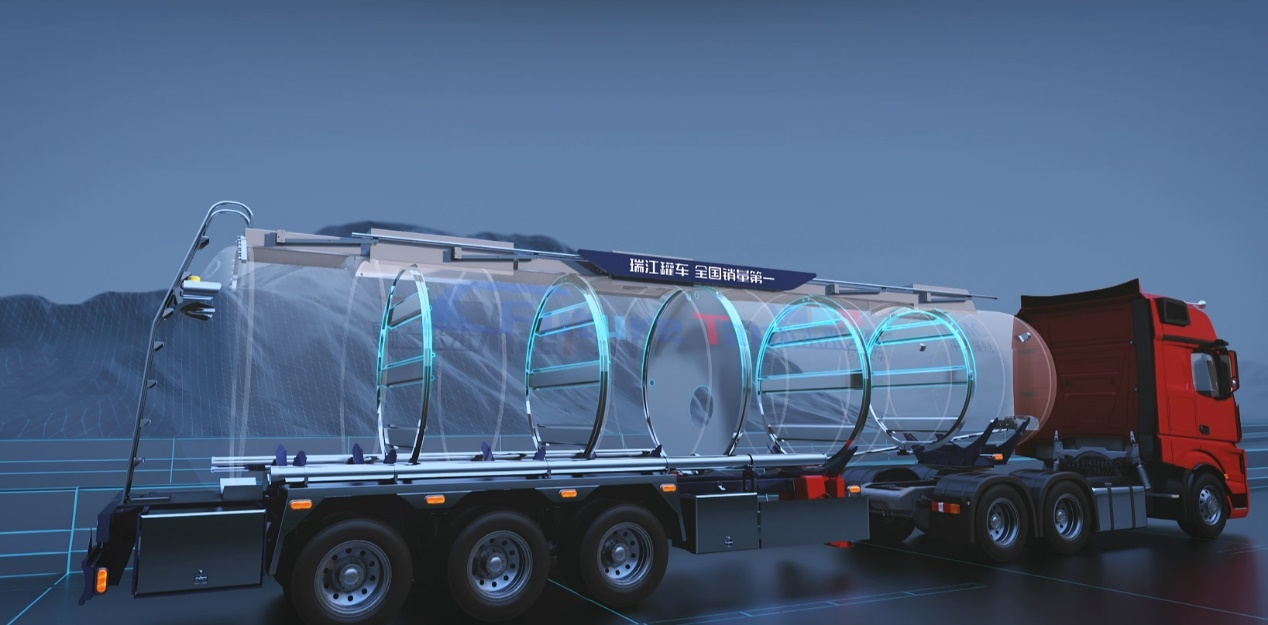 在中集强冠全新一代危化品液罐车全系品类中,对“安全”的考量无处不在,直击行业安全痛点,五大创新技术,为危化运输保驾护航。