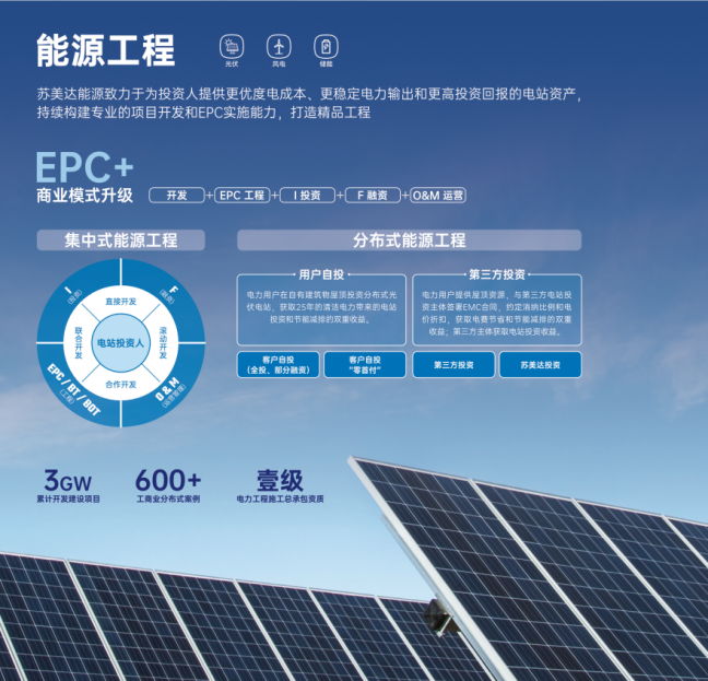 在工程领域,苏美达能源秉持“做一个工程,树一座丰碑”的理念,凭借在国内外能源工程领域积累的丰富经验以及所持有的一级电力工程总承包资质,为全球电力用户和电站投资人提供了专业的解决方案。同时,苏美达能源充分发挥其在“产品、工程和运维”领域的系统集成优势,实现了规范化管理、标准化实施,确保每一个项目都能高质量地完成。此外,苏美达能源还成功实践了多种创新的商业模式,展现出了强大的市场适应力和创新能力。苏美达能源期待与更多的合作伙伴共同探讨工程领域的发展与合作,共同开创更加美好的清洁能源新时代。
