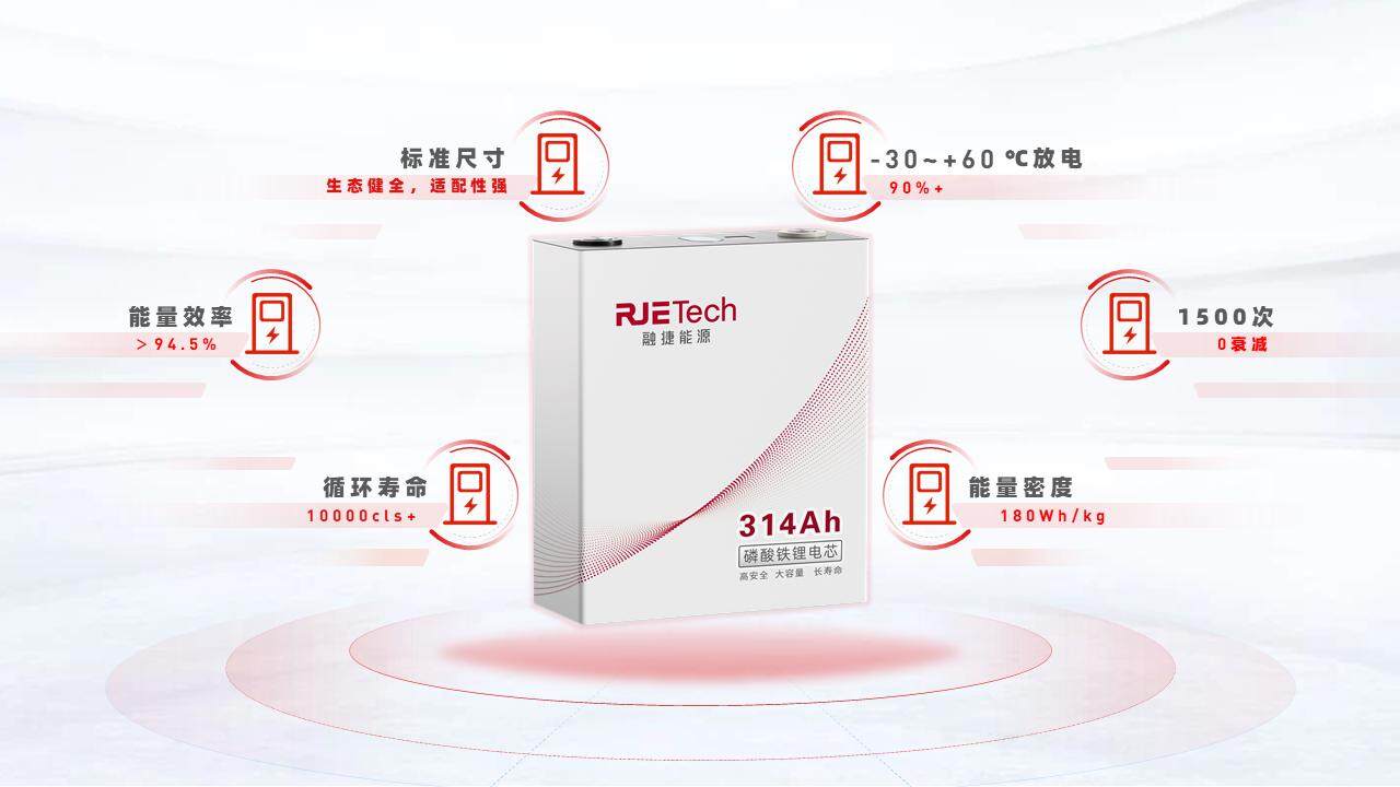 其中,314Ah电力储能专用电芯作为融捷能源的明星产品之一,其充放电能量效率高达≥94.5%@0.5P,循环寿命超过8000次,充分展示了融捷能源的技术实力和创新精神。