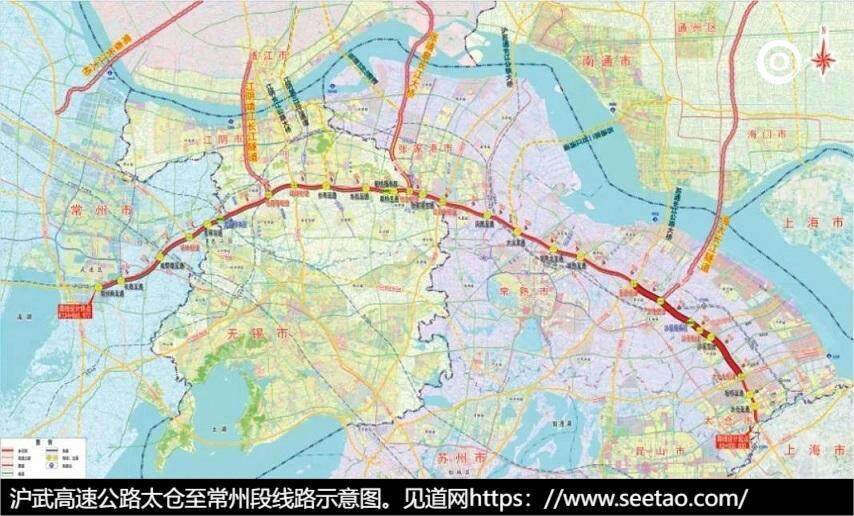沪武高速公路太仓至常州段是沪武国家高速公路(G4221)的重要组成部分,其中苏沪界向西至董浜枢纽段为与沈海高速公路(G15)共线段。本项目是江苏省高速公路网规划(2017-2035)中“十五射六纵十横”中“横八”的重要组成部分,连接苏南和上海,是江苏省与上海市的主要出入通道之一。