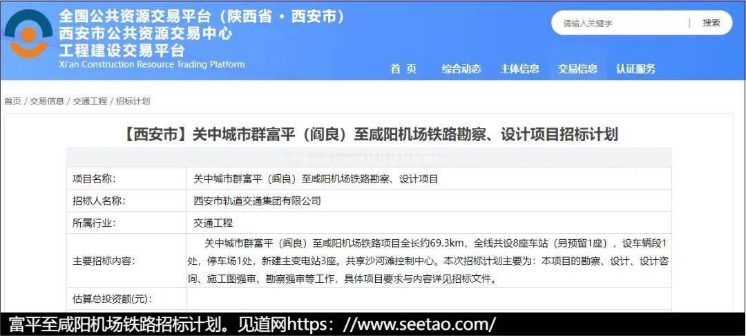 2024年6月15日获悉,关中城市群富平阎良至咸阳机场的铁路项目正稳步推进,其设计与勘察招标公告已相继公布,标志着该项目已正式获得国家发展和改革委员会以发改基础文件的批准,现阶段已满足招标所需的所有条件,为项目的后续实施奠定了坚实基础。