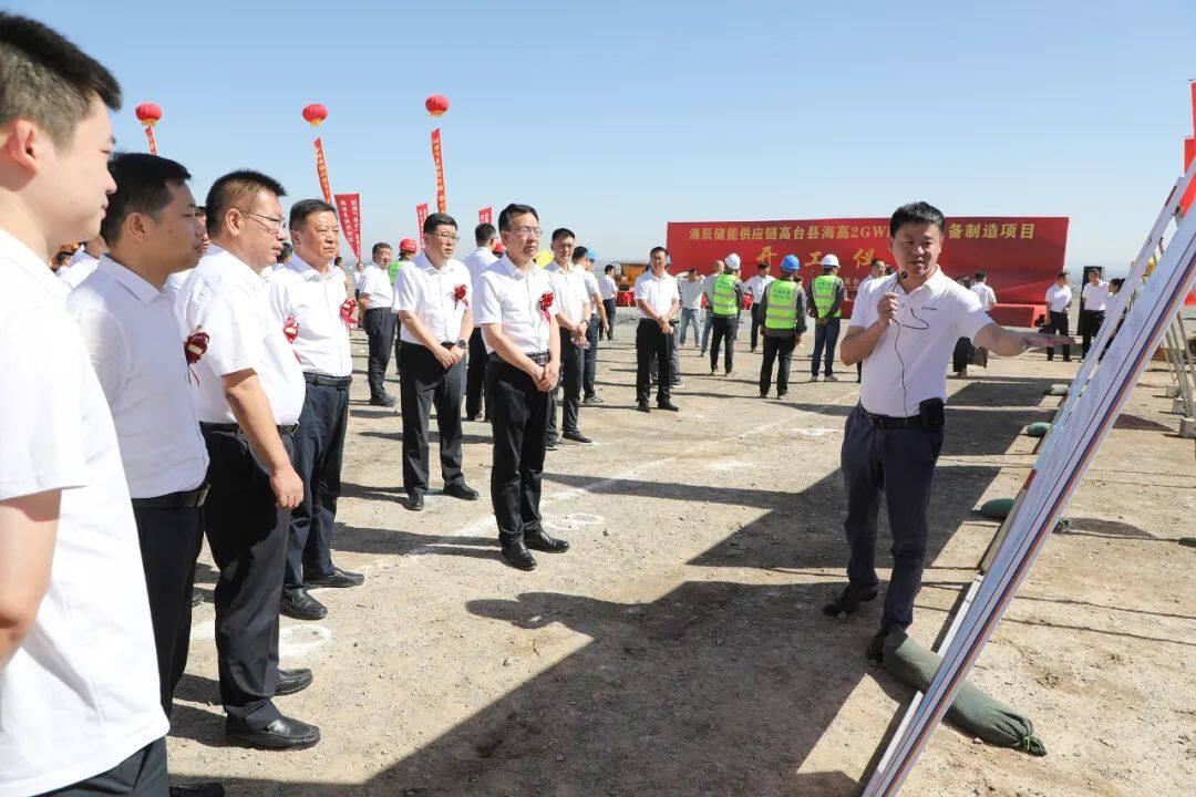 刘力江指出,该项目是张掖市“引大引强引头部”行动的重要成果,也是主动融入甘肃省“一核三带”发展格局,加力建设国家重要综合能源基地,培育壮大新能源及装备制造产业的生动实践,必将对推动高台乃至全张掖市新能源产业集群加速发展产生重大作用。高台县和相关单位要全力为企业发展创造良好环境,为项目建设开辟“绿色通道”,以最优惠的政策、最优越的环境、最优质的服务,让企业放心投资、舒心创业、安心发展。项目业主和参建单位要强化时间意识、质量意识,倒排工期、挂图作战,争取项目早建成、早投产、早见效。我们将继续深化同项目投资方的精诚合作,围绕建设国家重要综合能源基地,加快推动“风光水火氢醇”多能互补和“发输储运造”一体发展,携手开创双赢发展新局面。