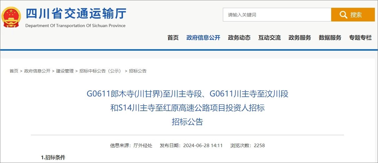 2024年6月28日,四川省交通运输厅发布了G0611郎木寺(川甘界)至川主寺段、G0611川主寺至汶川段和S14川主寺至红原高速公路项目投资人招标公告,3个项目全线均位于阿坝藏族羌族自治州境内,总里程507.848公里,总投资约994亿元。