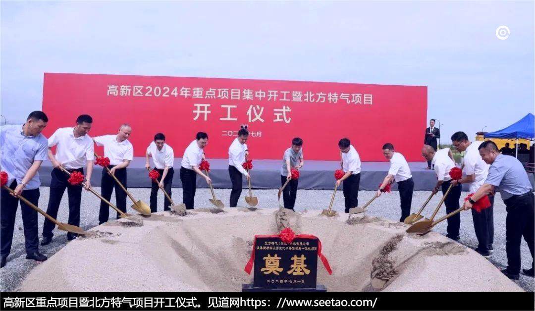2024年7月4日,浙江舟山高新区隆重举行了2024年重点项目集中开工仪式,其中北方特气项目作为重点工程同步启动。市委常委、副市长韩峻出席仪式并宣布项目正式开工。高新区党工委书记、管委会主任史舟海,北方特气公司董事长龚越亮以及相关市属部门的负责人也共同参加了这一盛大的开工仪式。