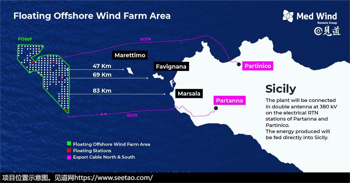 明阳集团以其卓越的风机设计创新能力赢得了Renexia的高度认可,双方坚信这一合作将极大提升Med Wind项目的发电效率和整体产能。Med Wind项目坐落于风景秀丽的西西里海峡,距离海岸线最近处约50公里,计划部署190台先进的浮式风电机组,预计年发电量可达惊人的9太瓦时(TWh),为意大利乃至欧洲的能源结构转型贡献力量。