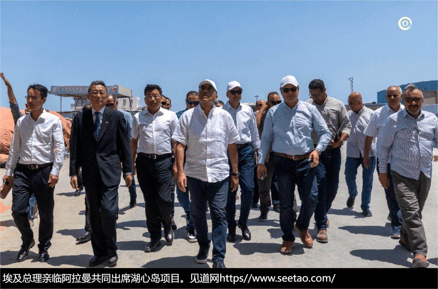 2024年7月27日,埃及总理马德布利亲临阿拉曼新城,对标志性的超高综合体项目进行考察访问,并特别出席了阿拉曼湖心岛项目的奠基开挖仪式。此次活动汇聚了多位重要嘉宾,包括埃及住房部部长谢里夫·艾尔·谢尔比尼、中国驻亚历山大总领事杨易及其领事金辉。中建埃及分公司的领导团队,董事长常伟才携副总经理王振芳、李新学全程陪同,共同见证了这一历史性的时刻。