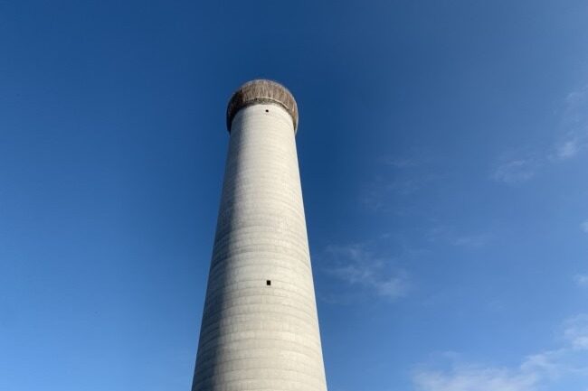 烟囱采用三炉合用多管式钢筋混凝土结构,内筒为钛复合板悬挂式单内筒,筒壁高203米,每一节模高为1.5米,单个排烟内筒出口直径7.5米,地面处筒壁外直径为28.1米,筒壁厚度为0.65米,最高处筒壁外直径为21.5米,筒壁厚度为0.4米。