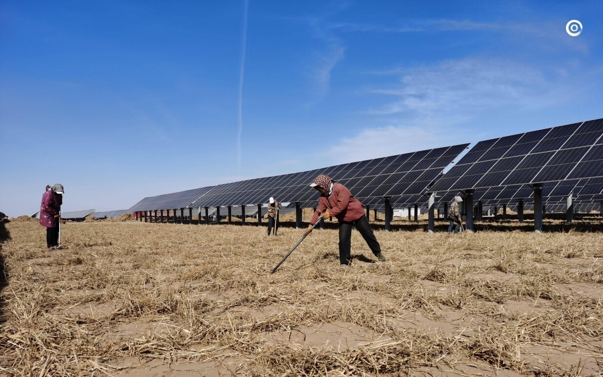 在这片广袤的沙漠里,光伏板如卫士般排列,构建起一座多功能的新能源基地。它们不仅通过光伏效应将太阳能转化为清洁电力,还巧妙地利用地桩固定沙丘,有效阻止了沙漠的蔓延,减少了土壤水分的蒸发,达到了防沙治沙的目的。同时,光伏板下的空间被充分利用,种植着黄芪等经济作物,这些作物不仅丰富了当地的生物多样性,还带来了可观的经济收益。更为巧妙的是,灌溉这些作物的水源,竟是经过处理的矿区污水,实现了水资源的循环利用。
