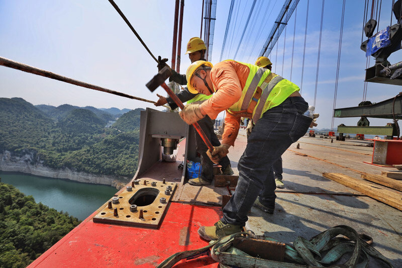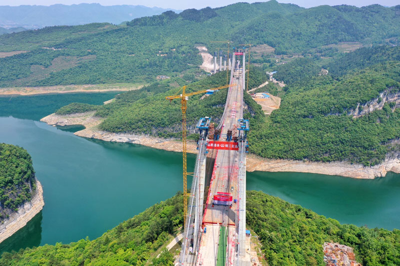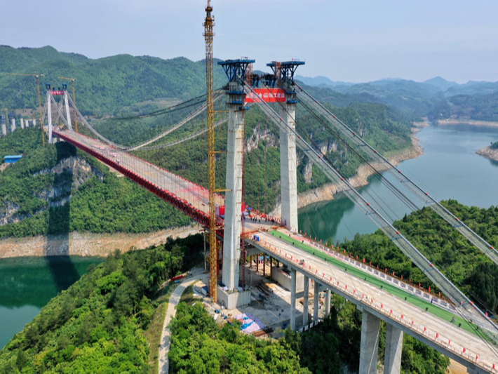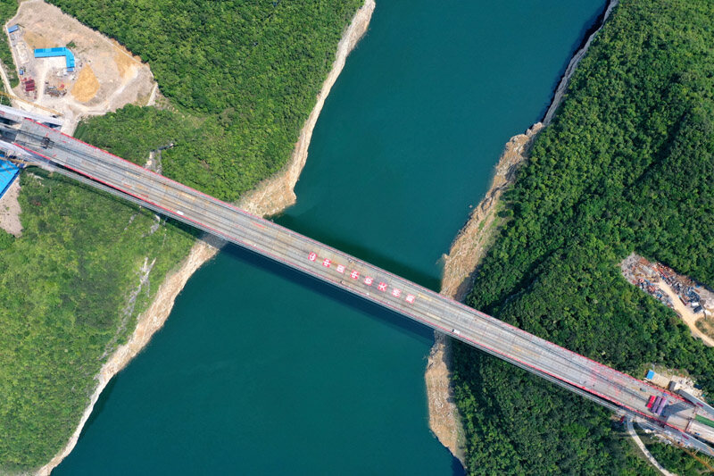 近日,由中铁大桥局承建的贵州遵余高速飞龙湖乌江大桥正式合龙。飞龙湖乌江大桥是遵余高速控制性工程,全长1.24公里,为主跨680米的钢桁梁悬索桥。