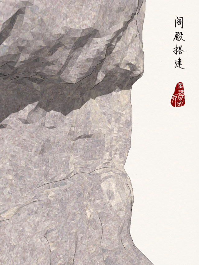 有了框架之后,屋顶、门窗、栏杆接连铺设一层层殿阁跃然而出。