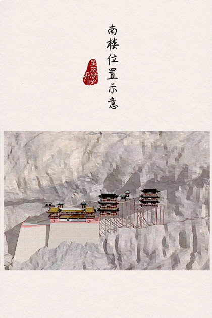 殿阁之间则用栈道连接, 后世更是加建为上下两层栈道,形成一个闭环。人们行走其上,楼梯或明或暗、曲折迂回,有如攀登天梯。