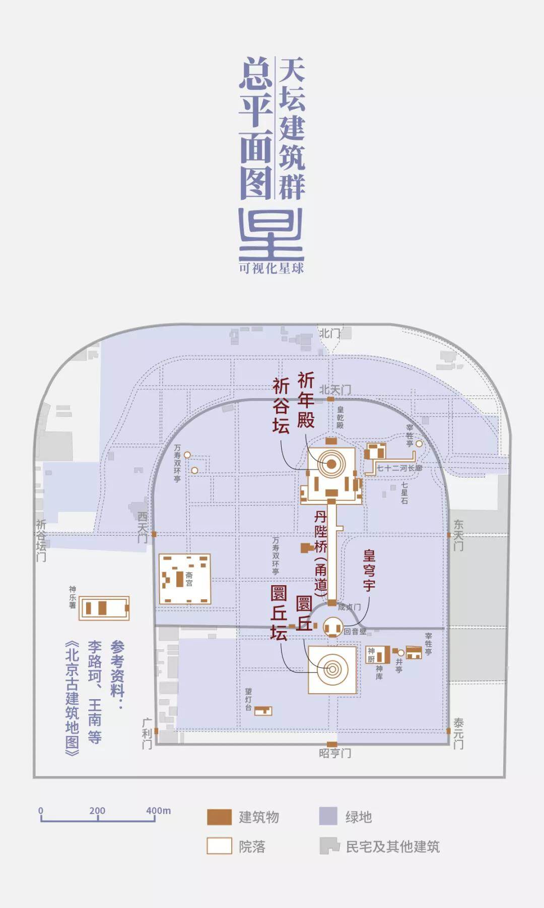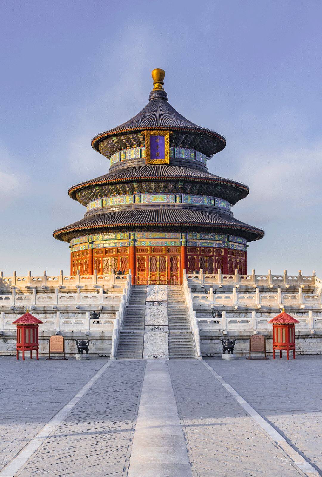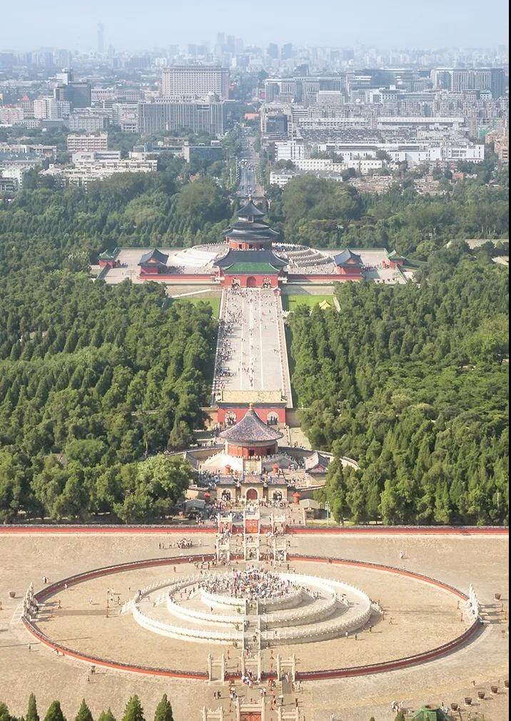 从象征意义到实际功能,以祈年殿为代表的封建礼制建筑,构成了中国传统文化的基本框架,影响到我们生活的方方面面,它寓意一切生活资料皆由天所赐予。天人合一,与祈年殿形成强烈对比的是位于其正南侧360m的圜丘坛