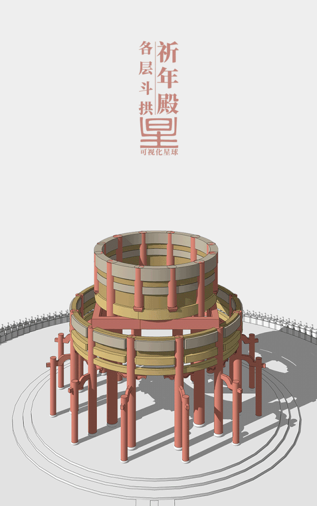 这样的组合也正是中国传统木结构建筑中不可或缺的基本要素。正如梁思成《清式营造则例》中所说:“在外形上,三者之中,最为庄严美丽的,······自是屋顶部分。但在技艺上,经过艰巨的努力,最繁复的演变,登峰造极,在科学美学两层条件下最成功的,确是支撑那屋顶的梁柱部分······”它们在祈年殿这里集精华于一身,成为我们了解中国古建筑的一个窗口