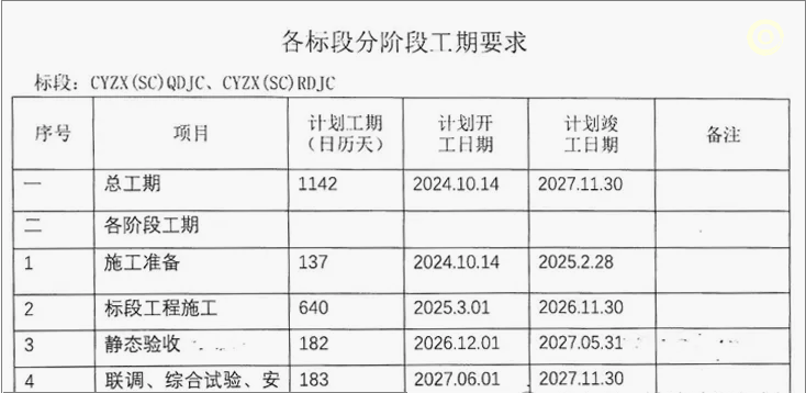 关于项目的时间表,成渝中线高铁四川段计划总工期为1142个日历天,预计于2024年10月14日正式动工,并力争在2027年11月30日前完成全部建设任务,实现通车运营。(此文出自见道官网www.seetao.com未经允许不得转载否则必究,转载请注明见道网+原文链接)见道网战略栏目编辑/蒋明月