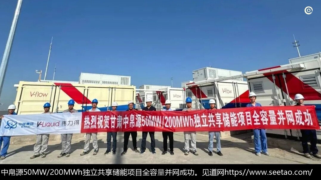2024年8月27日21时46分,中核汇能中帛源50MW/200MWh独立共享储能项目全容量并网,该项目是目前全国电网侧商业化运营容量最大的全钒液流独立共享储能项目,也是中核汇能首个全钒液流电池储能项目。