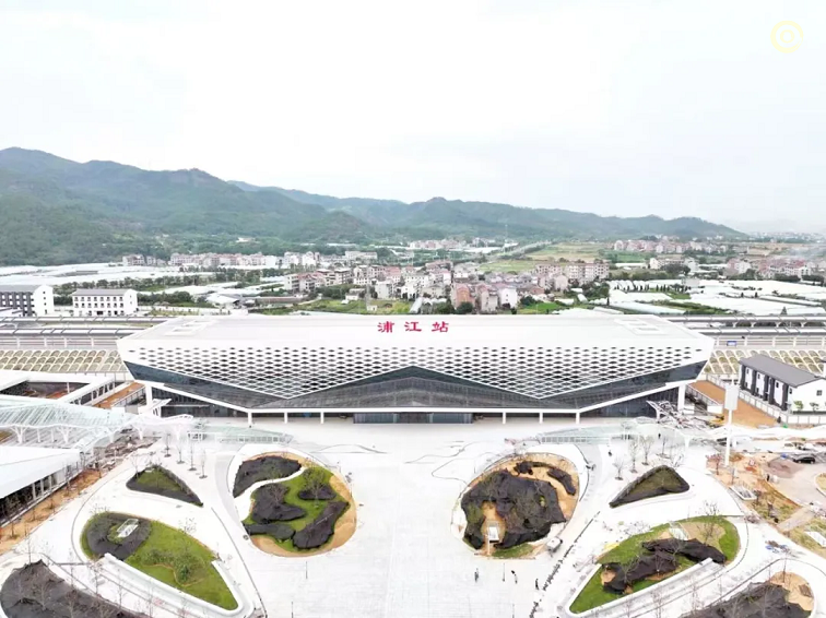 以水晶之都的璀璨意象为核心,站房设计犹如精心雕琢的水晶石,内外皆闪耀着工艺美学之光,不仅温暖明亮,更与水晶主题紧密相连,展现浦江的独特魅力,其总建筑面积约1.5万平方米,设有2台4线。
