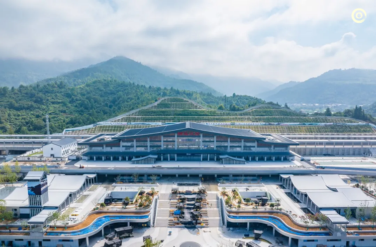 以高山流水,烟涛微茫的诗意画卷为蓝本,站房宛如云端之上的宫殿,轻盈而缥缈,不仅展现了仙居的诗画江南之美,更通过现代建筑手法,将传统山水画的意境融入其中,其2万平方米的建筑规模内,设有2台6线,为旅客提供了一处心灵休憩的港湾。