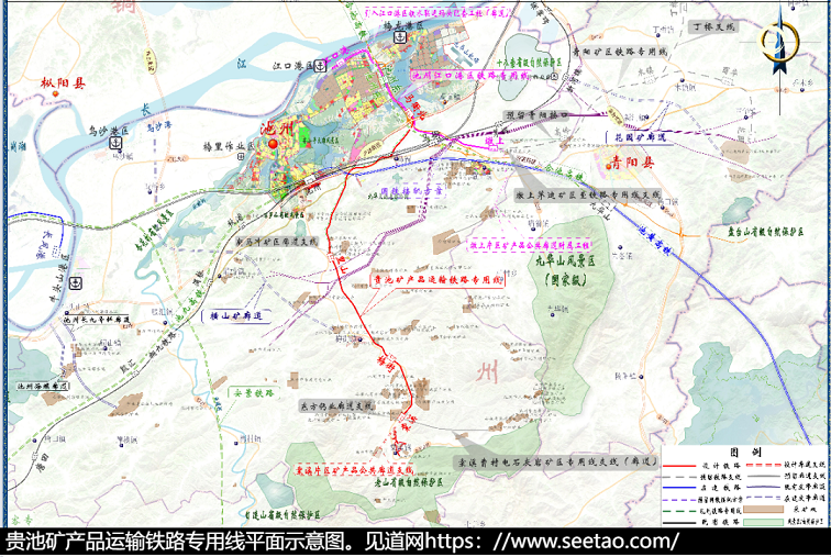 贵池矿产品运输铁路专用线全长约为48.546公里,其中含正线44.216公里与廊道支线4.33公里,分为两期实施。