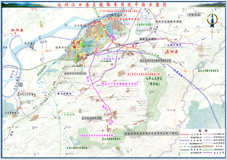 池州江口港区铁路专用线全长约为34.088公里,其中含正线23.038公里及多项廊道支线工程,同样分两期实施。