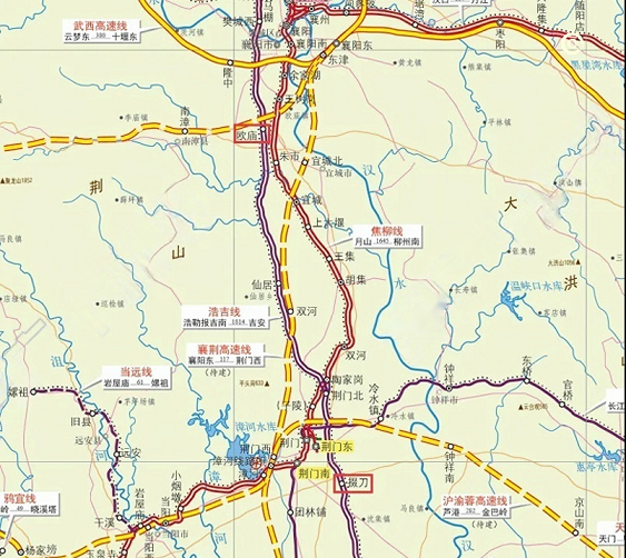 浩吉铁路襄州北至坪田区段沿线设有多个重要车站,包括位于湖北省的欧庙站、掇刀站、江陵站,以及跨越至湖南省的松木桥站和坪田站。这些车站共同构成了该区段铁路运输的关键节点。
