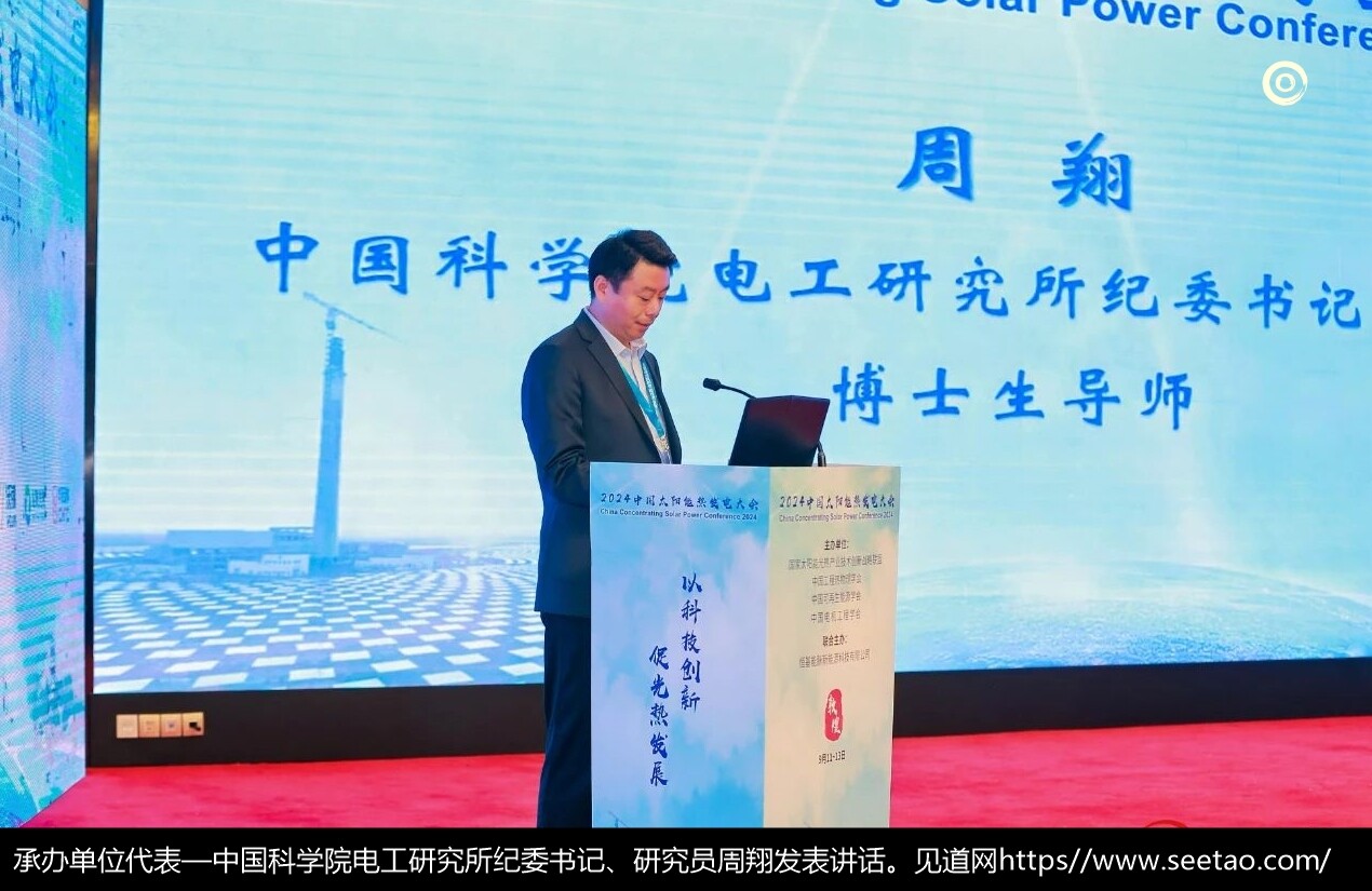 作为大会的承办单位代表,中国科学院电工研究所纪委书记、研究员周翔在发言中阐述了光热发电在新能源体系中的独特地位与广阔前景。他指出,光热发电作为绿色低碳、电网友好的电源形式,兼具调峰与储能双重功能,是新能源安全可靠替代传统能源的关键路径。随着新型能源体系与电力系统的加快建设,光热发电有望迎来规模化发展的新机遇。周书记呼吁,面对降本增效的挑战,需政策、市场与科技创新协同发力,通过产业链上下游的紧密合作,共同推动光热发电技术的商业化进程。