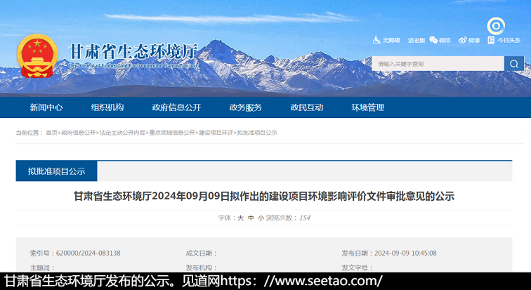 近日,甘肃省生态环境厅发布了《甘肃省生态环境厅2024年09月09日拟作出的建设项目环境影响评价文件审批意见的公示》,聚焦新建兰州至张掖三四线铁路武威至张掖段的环保审批进程。