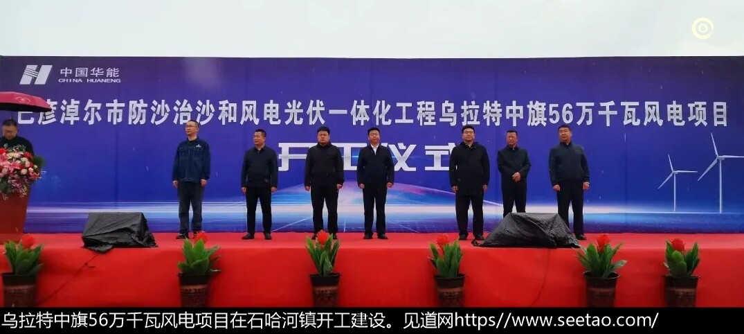 据乌拉特中旗发布消息,9月19日,巴彦淖尔市防沙治沙和风电光伏一体化工程乌拉特中旗56万千瓦风电项目在石哈河镇开工建设。