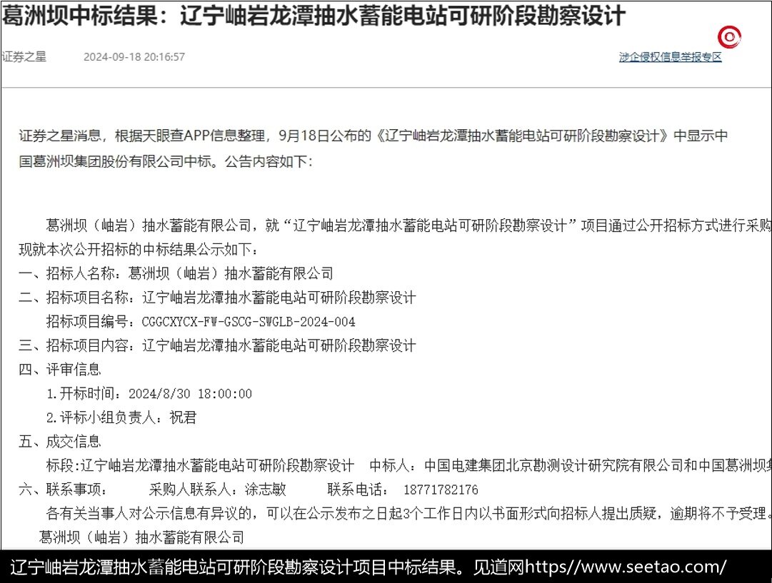 近日,辽宁岫岩龙潭抽水蓄能电站的可研阶段勘察设计项目圆满落锤,由中国电建集团北京勘测设计研究院有限公司携手中国葛洲坝集团股份有限公司成功中标,标志着这一能源巨擘即将破土动工,步入实质性建设阶段。项目坐落于鞍山市岫岩满族自治县,将成为辽宁省能源结构优化与电力安全保障的关键支柱。