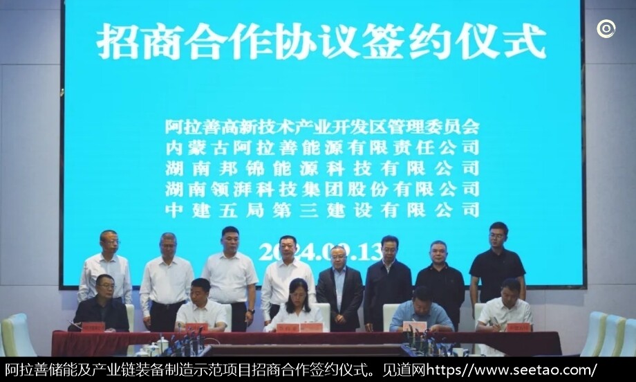 2024年9月24日获悉,9月13日,阿拉善高新区迎来了一场重要的招商合作签约盛会,标志着阿拉善储能及产业链装备制造示范项目正式落地。该项目总投资高达40亿元,旨在打造储能产业的新高地。