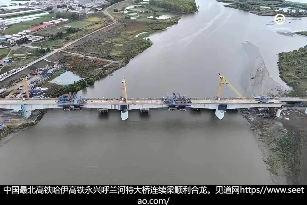 2024年9月25日,中国北方高铁建设迎来重要里程碑,哈伊高铁项目中的永兴呼兰河特大桥成功实现了其连续梁的合龙,这一壮举不仅意味着全线最长且技术挑战最大的架梁通道已畅通无阻,更为后续的高铁桥梁建设铺设了稳固的基石,极大地推动了整个工程的进展。