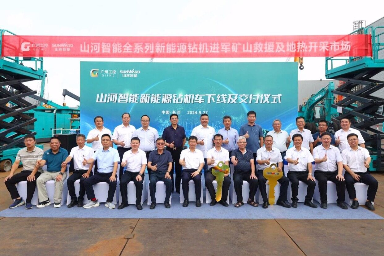 2024年9月27日,山河智能隆重举办SWPDT135深井套管车载钻机与SWPDC110深井履带钻机交机仪式。山河智能董事长付向东、副总经理朱建新、龙居才携手国家矿山应急救援山东特勘队及湖南省中彩机械化施工有限公司的代表们,共同见证了这一重要时刻。