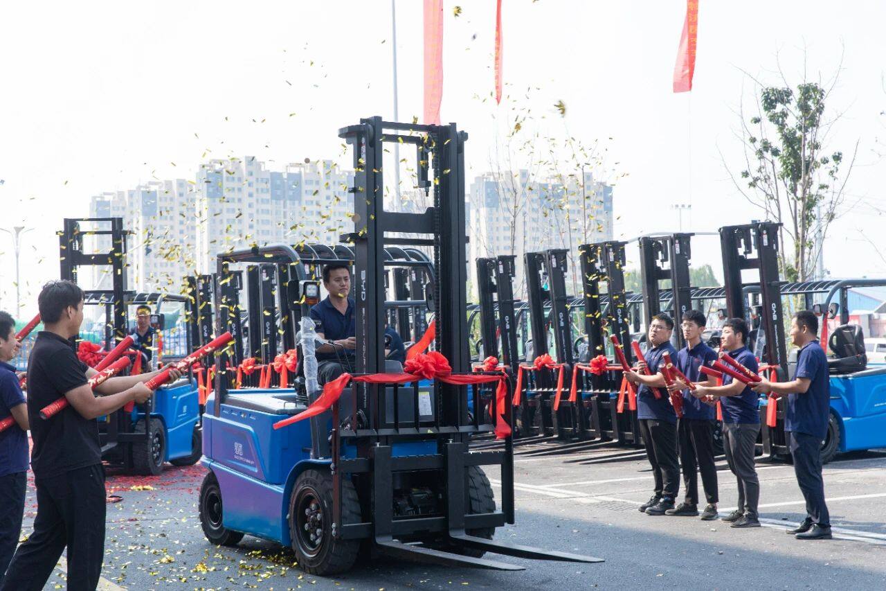 近日,300台比亚迪EL-Pro新能源叉车交付临沂物流园,并举办了隆重的交付仪式,比亚迪新能源叉车的进驻也为物流园增添了“一抹亮色”。