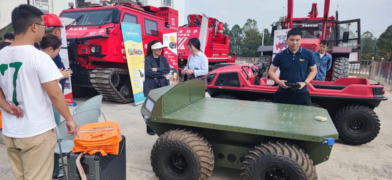 此外,詹阳重工还展示了“甲壳虫”轮履互换多功能全地形平台。该平台配备了先进的智能跟随系统和遥控系统,具备卓越的地形通过性能,包括爬坡越障、涉水、雪地穿行等。其模块化的设计使其可搭载灭火、运输、侦检等救援模块,适用于灾害发生时通过复杂地形及河流湖泊快速到达救援现场进行应急抢险、人员搜救和转运。同时,该平台还可通过配备不同类别的设备实现灭火、自动巡查、无人运输等作业功能,为电力抢险人员提高了作业安全性,实现了科技减负的愿景。