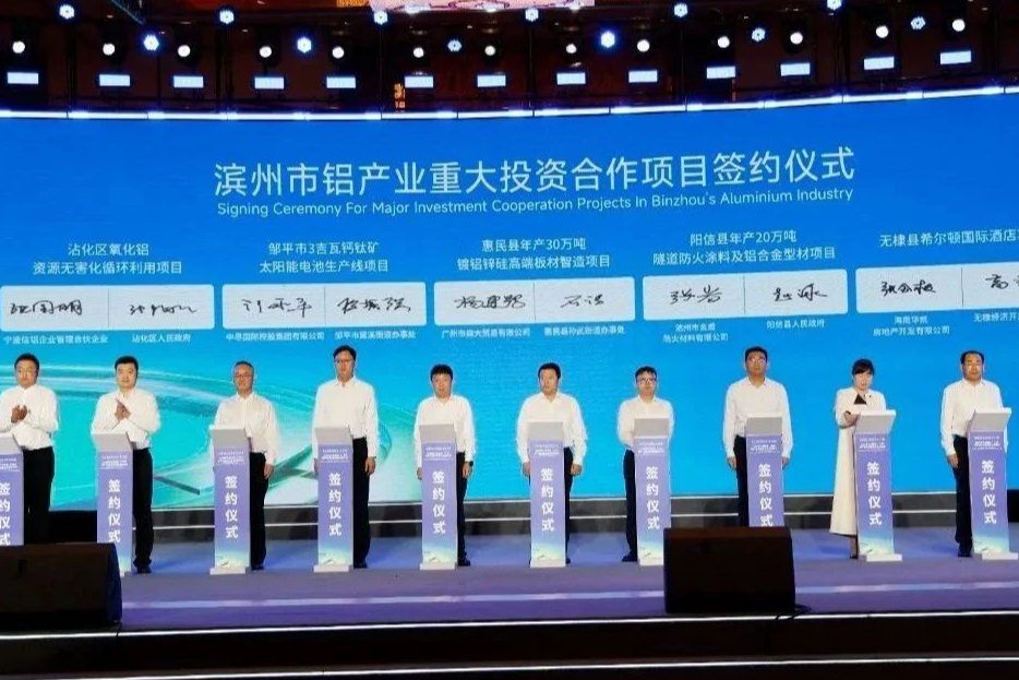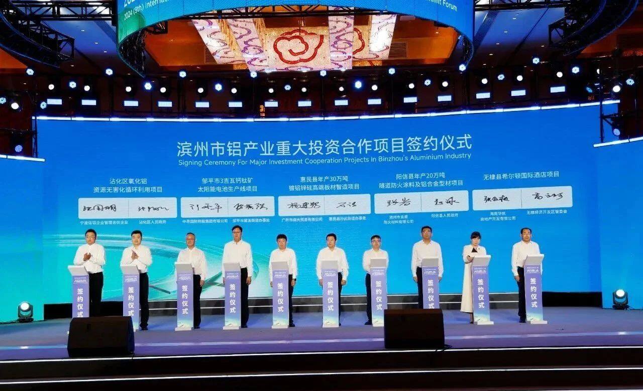 开幕式上还举行了滨州市铝产业重大投资合作项目签约仪式,20个项目签约,总签约金额157.4亿元。其中,中尽国际控股集团有限公司3GW钙钛矿太阳能电池生产线项目签约邹平市。