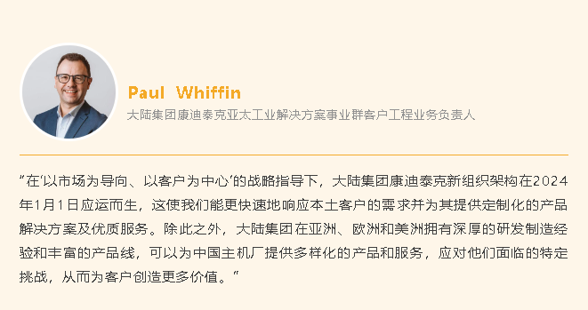 当前,中国工程机械主机厂客户正积极布局海外市场,寻求更广阔的发展空间。作为全球工程机械行业客户值得信赖的合作伙伴,大陆集团将利用其遍布全球的布局和敏锐的市场洞察,致力于为中国主机厂的出海之路提供坚实的支持。