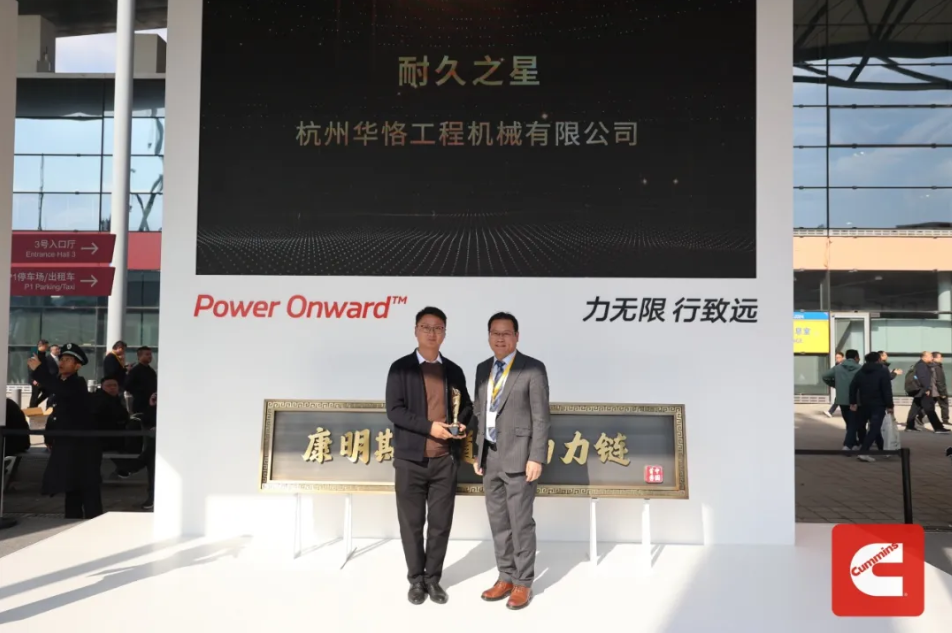 康明斯不仅关注技术创新和产品升级,同样重视与用户的深度合作和共同成长。在开展首日,康明斯东亚分销事业部总经理詹丽、康明斯动力系统事业部中国区工业市场总经理柴睿敏、东风康明斯发动机有限公司总经理黄海涛、广西康明斯工业动力有限公司总经理曾勇、东风康明斯排放处理系统有限公司总经理孙巧科为康明斯“耐久之星”、“高效之星”和“国四新星”用户代表颁奖,并倡议大家向这些用户学习,共同提升行业应用水平。