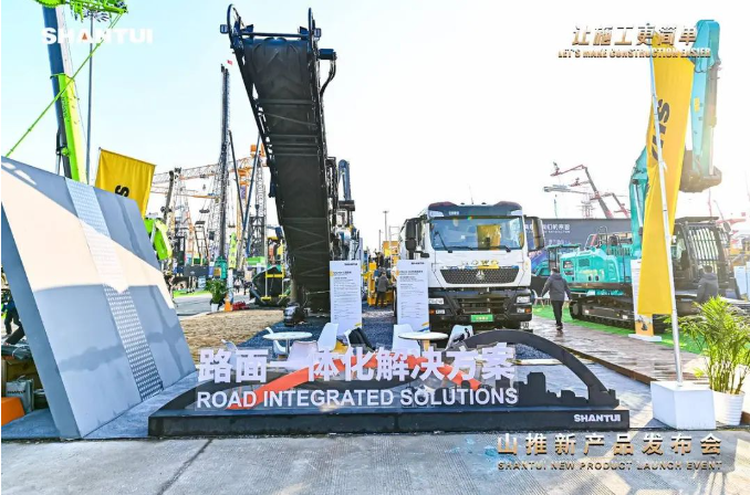 全面升级,性能革新!路面一体化和小型设备一体化解决方案,延续了山推七十多年技术积淀和优势,从外观到性能全面升级。SM200M-G铣刨机可靠高效,简单便捷;SPS45-G摊铺机摊得快、摊得好、摊得稳;CD410-Z35纯电搅拌车耐力强、超省钱、更安全;SE17SR挖掘机灵活、多变、功能全;BL75-C SD两头忙操作灵活,安全可靠......全系列产品施工效率更高、油耗更低,安全性和舒适性显著提升。并且山推以“智能化、自主化、信息化”为主攻方向,创新成果“井喷”,一系列引领潮流的新产品、新技术,正以“一马当先”之势,助推“中国智造”不断迈向新高度。此次展会,山推智慧施工一体化解决方案以及昆仑智慧施工平台悉数登场,充分展现了山推在高端智造领域的雄厚实力。