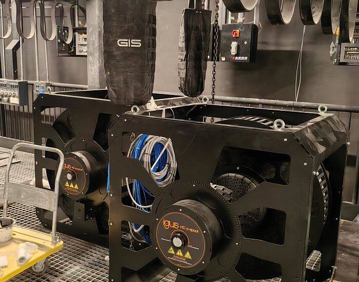 最终,大丰选择在格栅上排布多台e-spool无滑环的电缆卷轴来实现灵活且可靠的动力和信号的传输,其升降速度最高可达1.5m/s。区别于市面上常见的传统卷筒,e-spool不仅有多种尺寸可选,可以在一个卷轴中排布不同类型的电缆,并且运行平稳、低噪音。它的结构非常紧凑,可以使用在狭小空间内,因此在舞台应用领域广受好评。这个舞台应用也获得了2024年vector中国赛区的铜奖。